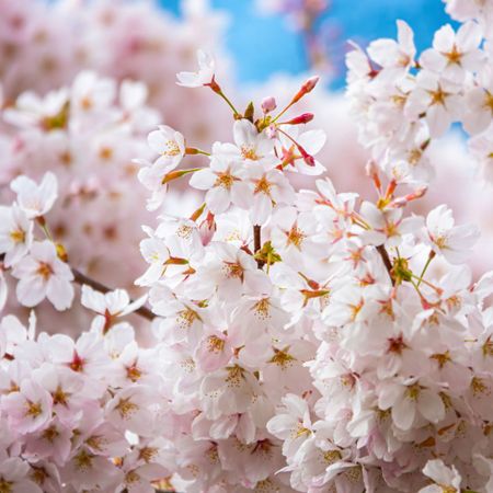 Onder de bloesembomen, langs het fietspad aan de Terracottastraat in de Regenboogbuurt in Almere Buiten.Bekijk evenement Kersenbloesemfeest AlmereEvenement